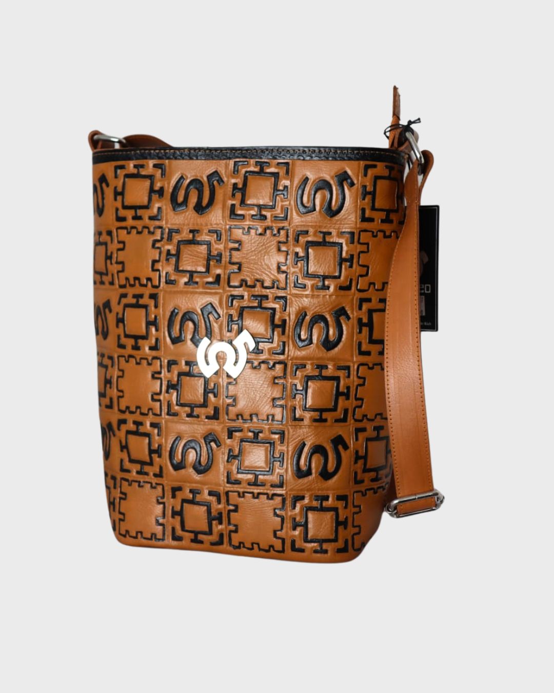 Tall tote with vintage tribal flair, ideal for unique expression.